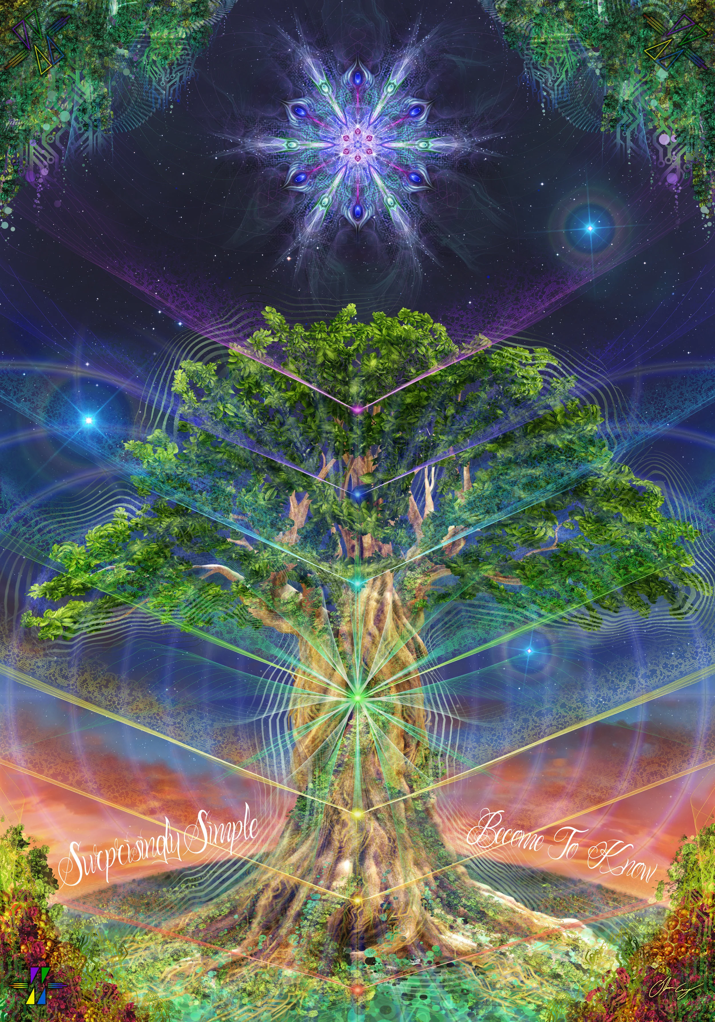 Trees collect energy from the sky (universe, cosmos) and translate that energy to the earth through their complex root systems. Humans similarly collect energy from the cosmos and translate it through our root systems (root chakra, feet for example). We are not rooted in one place however, so we can translate that universal/cosmic energy to the ground all over the earth.